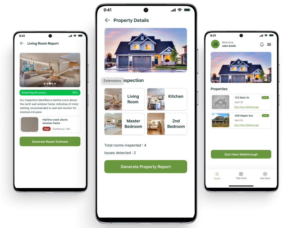 Inspect visible issues, share professional reports, and estimated local repair costs.